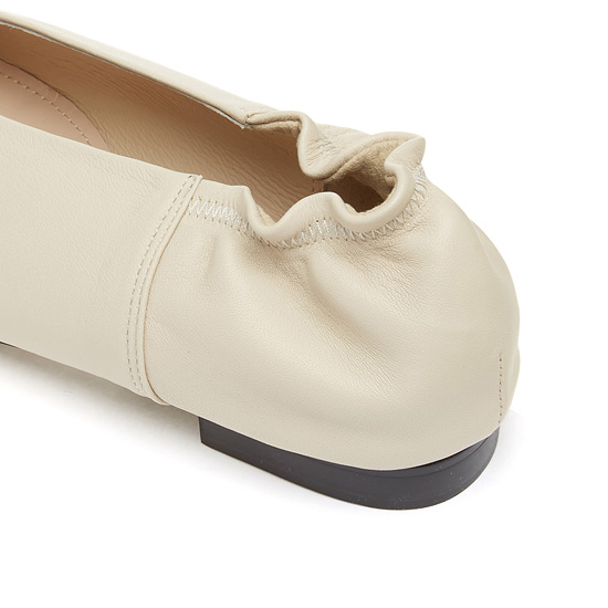 - 뒷춤에 텐션 있는 주름 디테일로 포인트를 준 여성스러운 무드의