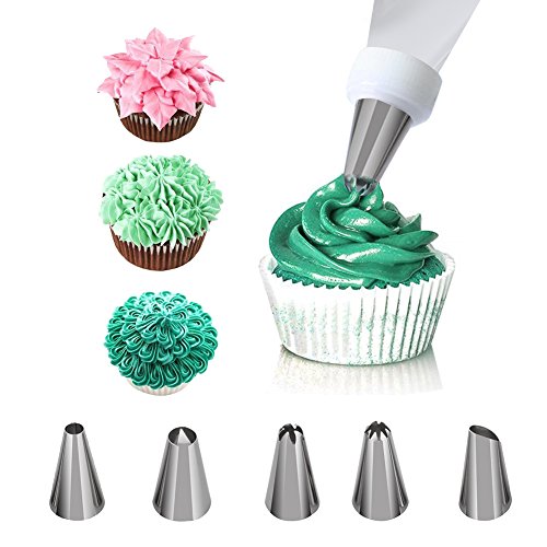 - ★PERFECT 7 PIECE SET: Our cake decorating set comes with two reusable 12"+10” pastry bags, 5 stainless steel fittings, and a plastic coupling. It's also dishwasher safe, lightweight, and durable.