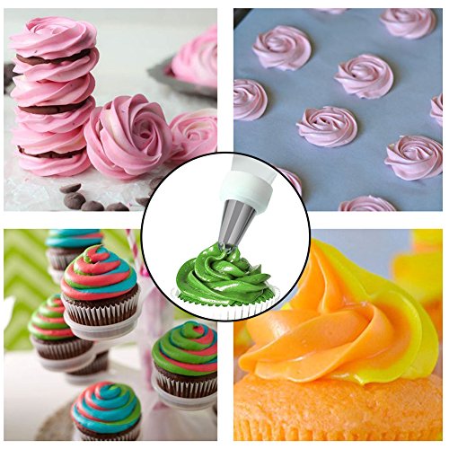 Cake Decorating Supplies Tips Kits Stainless Steel Baking Supplies Icing Tips with Pastry Bags, Disposable Baking Cookie Cake Decorating Bags + Icing Coupler (7 Pieces)