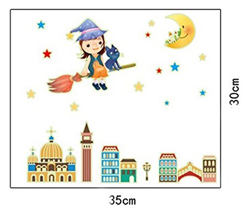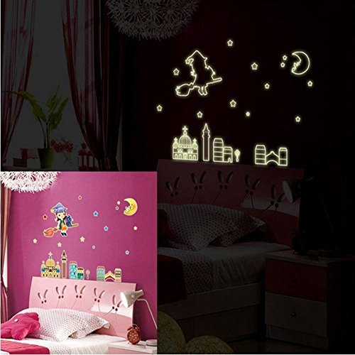 ufengke Elf Moon and Stars Wall Decals Fluorescence Stickers Glow In The Dark, Children's Room Nursery Removable Wall Stickers Murals