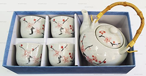 -. Feature : Beautiful High Quality Porcelain Tea Set comes with One Teapot (20 oz), 4 Teacups & Strainer / Pink Cherry Blossom Design in White Color Tea set by Happy Sales / Comes in a Nice Gift Box