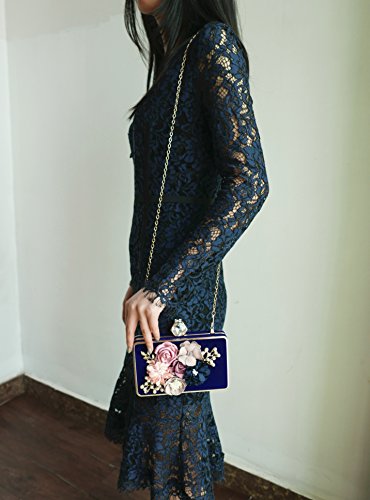 -. Feature : Rhinestones HEADS with these ELEGANT cascading flower-pearl bead and patent suede cocktail purses. / COMPACT, YET SPACIOUS this bag has the following dimensions : 7.3 in (L) X 1.4 in (W) X 4.1 in (H), weight is 0.79LB. / FLAWLESS INTERIOR - Superior metal frame construction with shiny and fashion pearl outside and soft satin lining fit for iphone 7 plus and makeups. / VERSATILE DESIGN - Clutch by hand, tote or crossbody bag use with detachable chain about 48 inch length. / Unique design evening bag are perfect for night out, date, cocktail party, family reunion, prom, banquet and so on .