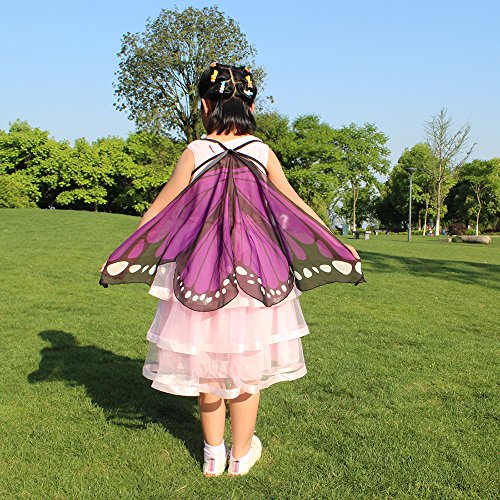 The Fanciful Fabric Butterfly Wings shawl delights little ones who love dress up and imaginative play. The sleeveless, butterfly-inspired dress features attached wings with finger loops so kids can spread their wings and flutter. Vibrant shades and airy fabric make this dress and wing pairing a truly magical playtime essential. A perfect addition to any pretend play or dress-up collection, this wing cape also makes a wonderful Halloween costume and a birthday present.