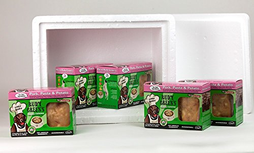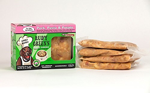 -. Binding : Misc. -. Brand : Rudy Greens Doggy Cuisine -. EAN : 0851872005033 -. Feature : Cooler case contains 5 boxes of Rudy Green's, each with four 6-oz pouches that can be thawed in warm water in minutes / A great way to add nutrition and variety to a dry diet / Perfect for sick or older dogs as a delicious and healthful meal / Simple, limited ingredients make it good for dogs with allergies or to hide medications / Low calorie and nutrient dense for overweight dogs on restricted intake -. Label : Rudy Green Ventures - DROP SHIP -. Manufacturer : Rudy Green Ventures - DROP SHIP -. Model : 5 pack -. MPN : 5 pack -. PackageQuantity : 1 -. PartNumber : 5 pack -. ProductGroup : Pet Products -. ProductTypeName : PET_SUPPLIES -. Publisher : Rudy Green Ventures - DROP SHIP -. Size : One Size -. Studio : Rudy Green Ventures - DROP SHIP -. Title : Rudy Greens Doggy Cuisine Pork, Pasta & Potato Dog Food, One Size -. UPC : 851872005033