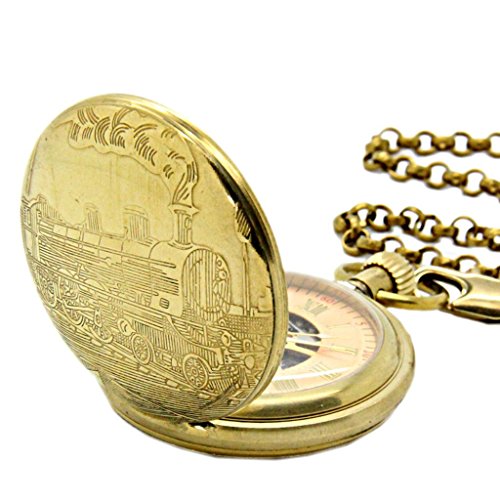 -. Title : E-future Pure Brass Vintage Skeleton Unisex Retro Gold Mechanical Chain Pocket Watch