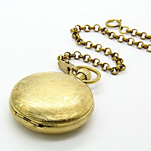 -. Feature : High quality mechanical pocket watch / Pure brass chain and case / Roman numerals dial / One side open pocket watch / Retro Style