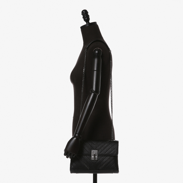 NOZZE (노제)는 클래식한 형태의 체인 플랩백입니다. M사이즈는 슈렁큰 가죽을 사용해, 절개 또는 퀼팅 작업 후, 0.5MM의 얇은 체인으로 메쉬작업 한 체인백입니다. 루즈앤라운지 시그니처 V패치 체인 메쉬 디테일로 루즈앤라운지만의 스페셜한 감성의 체인백입니다. 적당한 사이즈에 젊은 감성과 스페셜한 감성을 담은 디자인입니다.