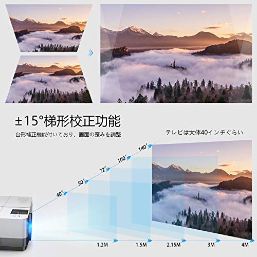 VANKYO L420 プロジェクターは台形補正機能があり、上へ15度、下へ15度が調整できるのでミニプロジェクターの歪の画面も簡単に調整できます。