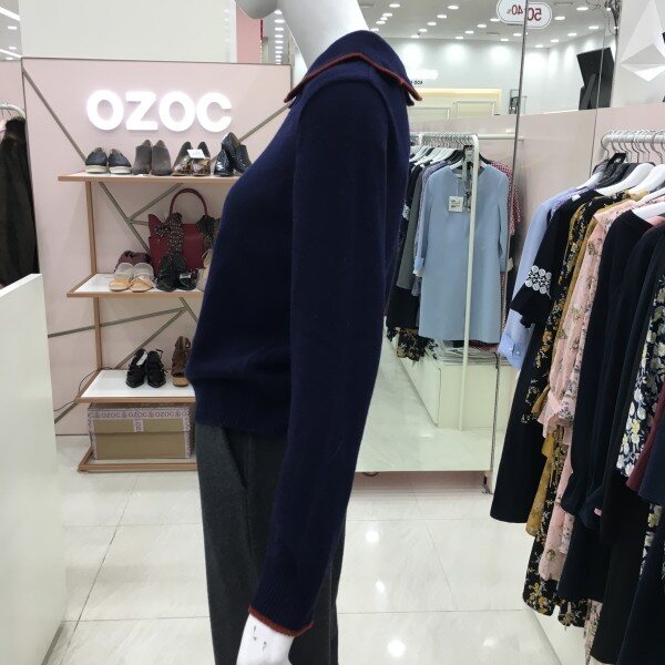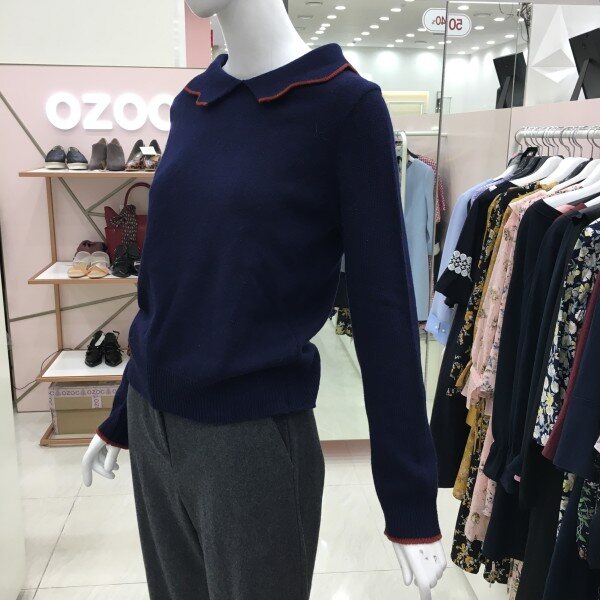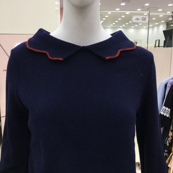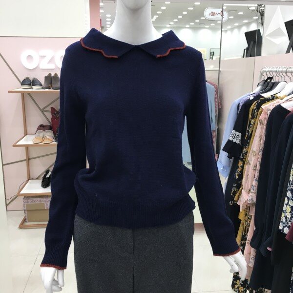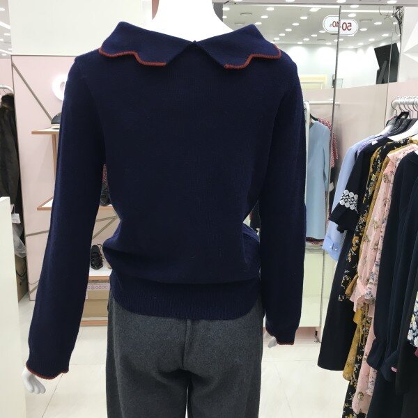 물결 카라가 포인트인 니트 소개해드려요.기장감이 살짝 짧아 하이웨스트 팬츠나 스커트와 매치하시기 좋습니다.