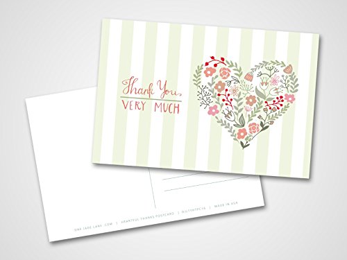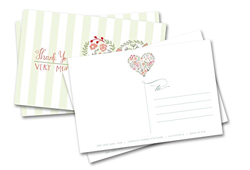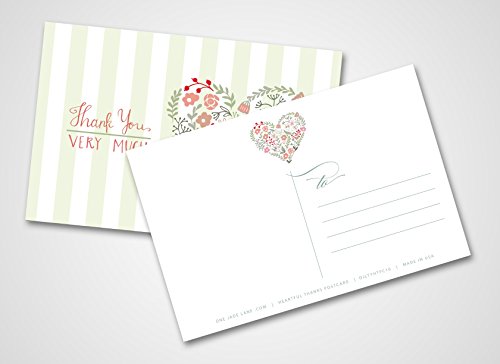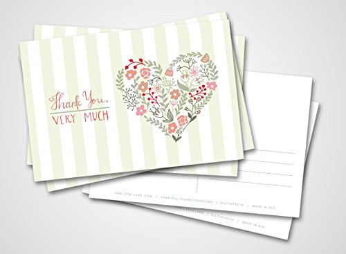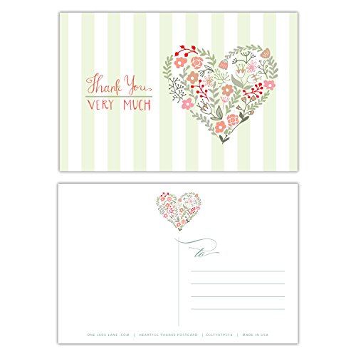 One Jade Lane - Heartful Thanks, Thank You cards POSTCARDS (Self-mailer) Postage Saver (Set 40 Cards).