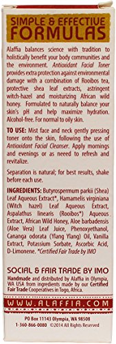 This balancing toner provides extra protection against environmental damage with a combination of antioxidant rich Rooibos tea, protective shea leaf extracts, astringent witch-hazel and moisturizing African wild honey. Formulated to naturally balance your skin's pH and help maximize hydration. Alcohol-free. Suitable for all skin types, but specifically recommended for normal, combination and oily skin. Equality-Empowerment-Beauty. These are the three principles that Alaffia follows to not only bring customers the best natural, fair trade skin and hair care, but also to help relieve the cycle of poverty in Togo. Alaffia empowers West African communities to become sustainable through the fair trade of indigenous resources. We encourage empowerment through our community projects, our women's cooperatives, and through education and involvement in our local customer communities. We firmly believe that the cooperation of people across the world is an essential part of building sustainability in all communities.Feature