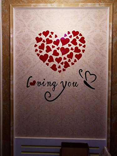 SIS Heart& Love- DIY Wall Stickers ,3D wall Decals,tattoos,wall decor-silver (medium 60 x60cm, Red)