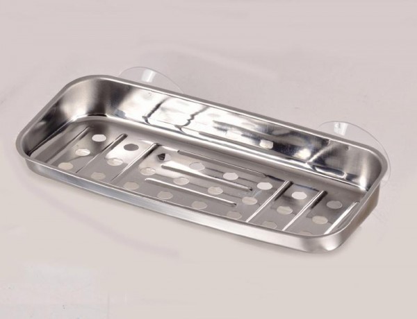 丈夫で衛生的なステンレス製の洗剤・スポンジラック。