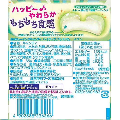 原材料:水あめ、砂糖、ぶどう糖、植物油脂、ゼラチン、加糖メロンピューレ/ソルビトール、増粘多糖類、グリセリン、酸味料、香料、乳化剤、ベニバナ黄色素、クチナシ青色素