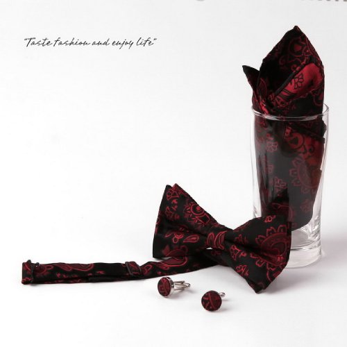 -. Title : EBC1B03 Perfect Patterned Silk Pre-tied Bowtie Cufflink Hanky Set By Epoint