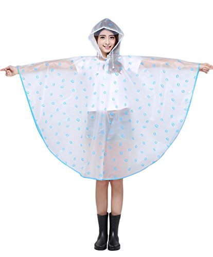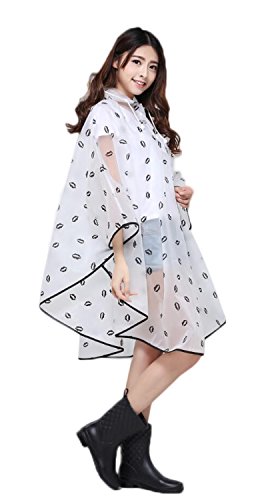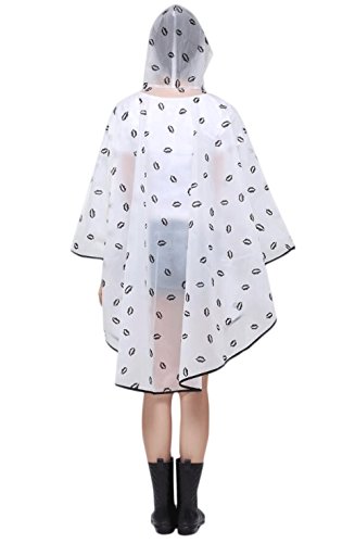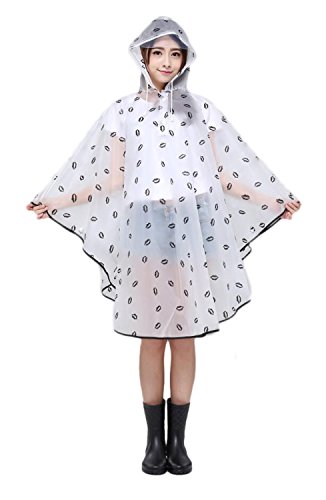 -. Feature : Made of 100% high quality waterproof EVA fabric,eco-friendly,breathable,non-toxic,no odor,durable and comfortable wearing,can't stimulate to your skin / One Size: front and back length about 39.4", side length about 24.8" / Adjustable draw cord at hood taped seams and snap fastener closure design,fully sheltered around your head to avoid getting wet when caught the rain or block wind / Fashion design with lipstick make you look quite cute in the rain,see through and lightweight rain poncho,not stuffy feeling / Folds easily to store anywhere,quick drying,designed with hood is great for any hiking,riding and other outdoor activities during the rainy or snowy day