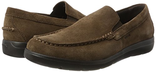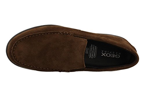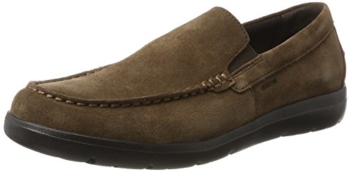Studio : Geox Publisher : Geox Binding : Apparel Product Description Super-lightweight men's moccasins with extremely comfortable wide tips. geox patented perforated sole for breathability and performance. mesh lining for added breathability. wide toe for comfort. lightweight eva outsole to provide cushioning and flexibility. the classic geox rubber sole is based on an exclusive patent: the combination of the perforated sole and the resistant breathable and waterproof membrane allow for natural temperature regulation, thereby creating the perfect microclimate inside the shoe that keeps feet dry and comfortable for the whole day. 0