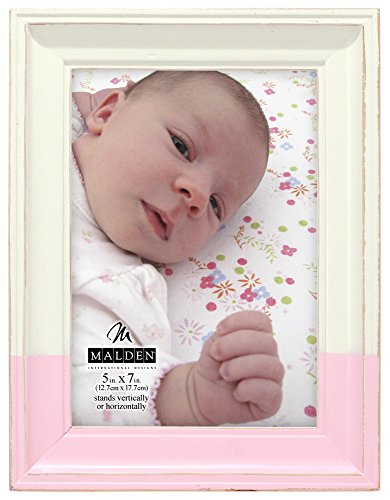 Malden International Designs Rustic Wood Fashion Off-White Picture Frame with Pink Dip Picture Frame, 5x7, Off White