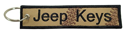 -. Feature : Embroidered with "Jeep Keys" and Mud Terrain tire tracks on both sides / Durable merrowed border, Measures: 5"x1.25" / Helps distinguish your offroad vehicle's keys / Non-marring, Washable, Noiseless, Soft and Comfortable in your pocket / Makes a great gift for any offroader!