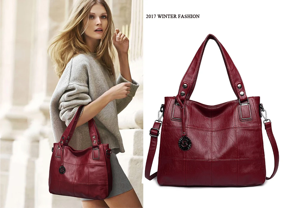2017秋冬女性のハンドバッグ大きなダブルジッパーボストンブランド高級女性ショルダーバッグレザーメッセンジャーバッグ赤ハンドバッグ