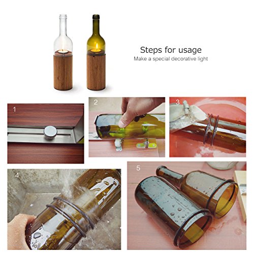 -. Feature : ✔ CUTTING LENGTH: 7.5 - 27.5cm and the cutting knife can be adjusted to suit different sizes of bottles. Suitable for most of beer, wine, whiskey, champagne, drinking glass round bottles etc. / ✔ CREATIVE DIY GLASS BOTTLE CUTTER: Re-cycle using old bottles to DIY funky new things, such as: Halloween gift or tools, vase, candle holder, Bottle Lamps or home decoration / ✔ EASY TO OPERATE: Only 5 step to recycle and re-use your old wine bottles. 1. Adjust the cut length and place bottle on cutter tool, 2. Rotate with pressure to cut a line on the bottle, 3. 2 rubber bands are set within 1 cm on both sides of the tangent, 4. Slowly poured boiled water on the cutting line 30 seconds and then replaced cold water, 5. Successful cutting / ✔ ENVIRONMENTALLY FRIENDLY: Old bottles through simple cutting, re-made into other things, help you do your bit for the environment / ✔ WHAT YOU GET: LC Prime® 1 X Glass Bottle Cutter, 2 X Pieces of sandpaper, 2 X Silicone separation rings, 1 X 6mm Hole Saw, 1 X 8mm Hole Saw. And our 60-day warranty and friendly customer service. Great choice for & Gift idea.
