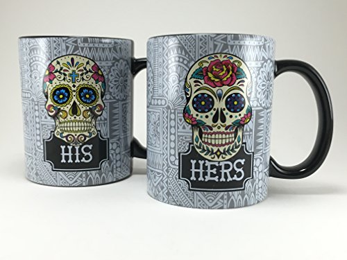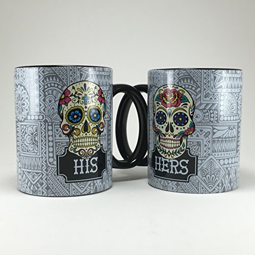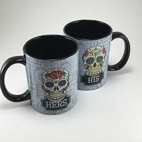 -. Title : Candy Skull Set of His & Hers Ceramic Coffee Cups/Mugs
