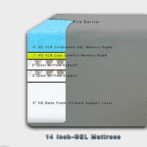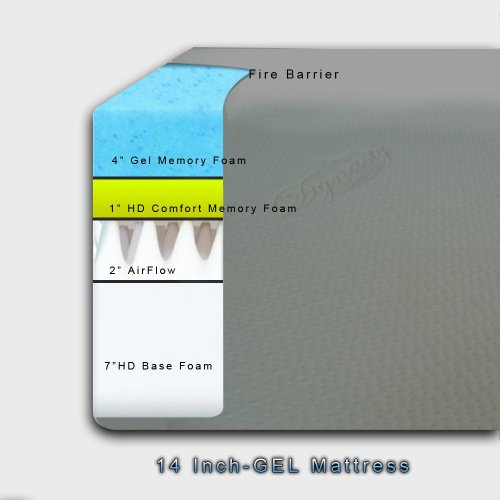 -. Brand : DynastyMattress -. Color : White Brown -. Feature : Made with Highest Quality and durable 5-layer construction! / 4" High Density 4lb Gel Memory Foam Layer: Sleep Cool Technology Gel Memory Foam! / 1" High Denisty 4lb Comfort Memory Foam and 2" + 2" Cool Airflow and 5" HD Base Foam Support. / Luxurious white cover with brown suede on corners, fire barrier, zipper cover! / Mattress Only! Foundation not included. 30 years Limited Warranty. Comfort Rating: MEDIUM FIRM! -. Label : DynastyMattress -. Manufacturer : DynastyMattress -. ProductGroup : Furniture -. ProductTypeName : HOME_BED_AND_BATH -. Publisher : DynastyMattress -. Studio : DynastyMattress -. Title : DynastyMattress NEW! 14-Inch Grand CoolBreeze GEL Memory Foam Mattress