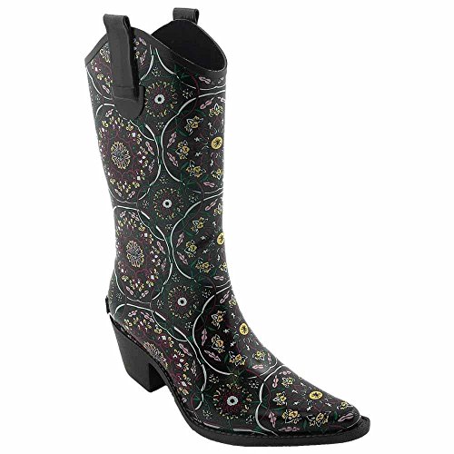 Product DescriptionSynthetic Rubber sole. Womens rubber rainboots. Rain Boot with high 11" shaft. Features: Various beautiful designs Pull-on straps and a pointed toe.0