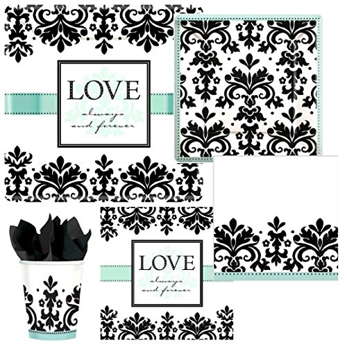 Love Always & Forever Damask Bridal Shower Wedding Party Supply Pack! Bundle Includes Paper Plates, Napkins & Cups for 8 Guests