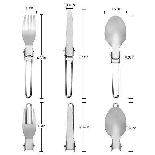 PRODUCT INFORMATION Dinner Knife: Length: 6.50inches, Width: 0.43inches, Closed Length: 3.70inches Fork: Length: 6.30inches, Width: 0.95inches, Closed Length: 3.67inches Spoon: Length: 6.38inches, Width: 1.50inches, Closed Length: 3.66inches 0