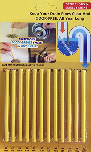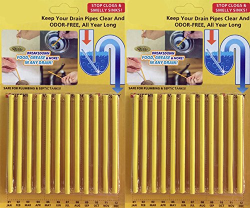 -. Brand : Dragon Honor -. Color : Multicolor -. EAN : 0717643019770 -. Feature : Breaks down grease, fat and food which cause blockages and bad smells. / Uses powerful natural bacteria and enzymes / Keeps your drains free flowing and clean smelling / Each pack of drain sticks contains 12 sticks, enough to help prevent blockages and bad smells for 1 year / Avoid embarrassing smells and nasty water buildup in sinks and showers with just one Sani Stick per month -. ProductGroup : Kitchen -. ProductTypeName : KITCHEN -. Title : DragonHonor 24pcs(2 Packs) Enzymatic Drain Sticks - Helps to Prevent Blockages Forming - 1 Year of Protection Per Packet(Lemon) -. UPC : 717643019770