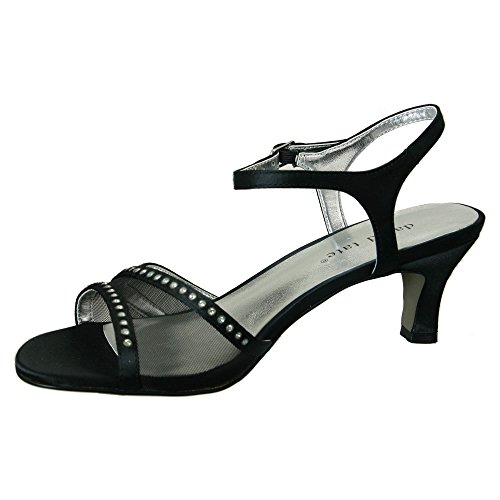 -. Feature : Adjustable ankle strap entry with buckle closure / Partially-wrapped heel / Satin upper / Heel height: 2 inches / Mesh vamp panels