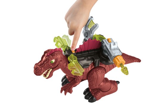 -. Feature : Press a button and Spinosaurus walks & roars like a real dinosaur! / Removable armor for classic dino play! / Lots of imaginative play for little dino lovers! / Imaginext figure fits in control station! / Includes Spinosaurus, armor, Imaginext figure, figure's armor, and projectile for cannon