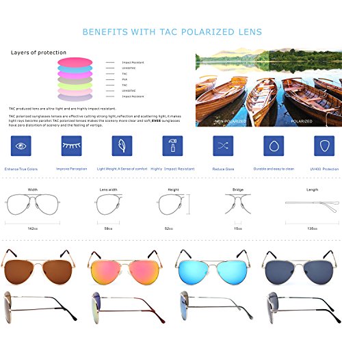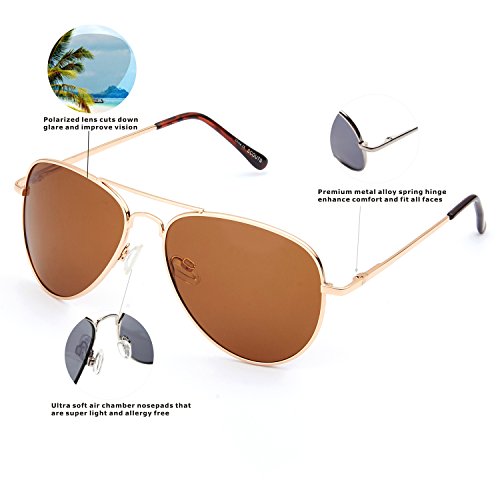 EVEE Unisex Classic Metal Aviator POLARIZED SUNGLASSES with Spring Hinge (Scout)