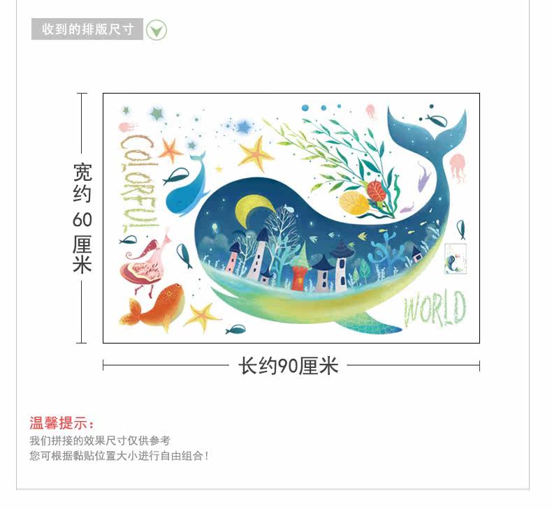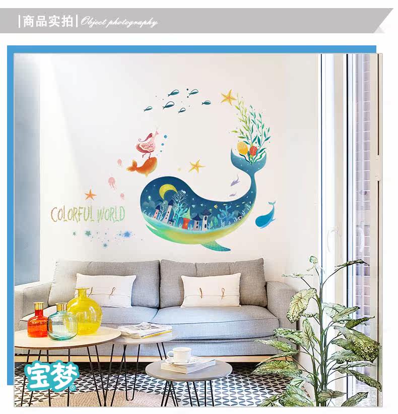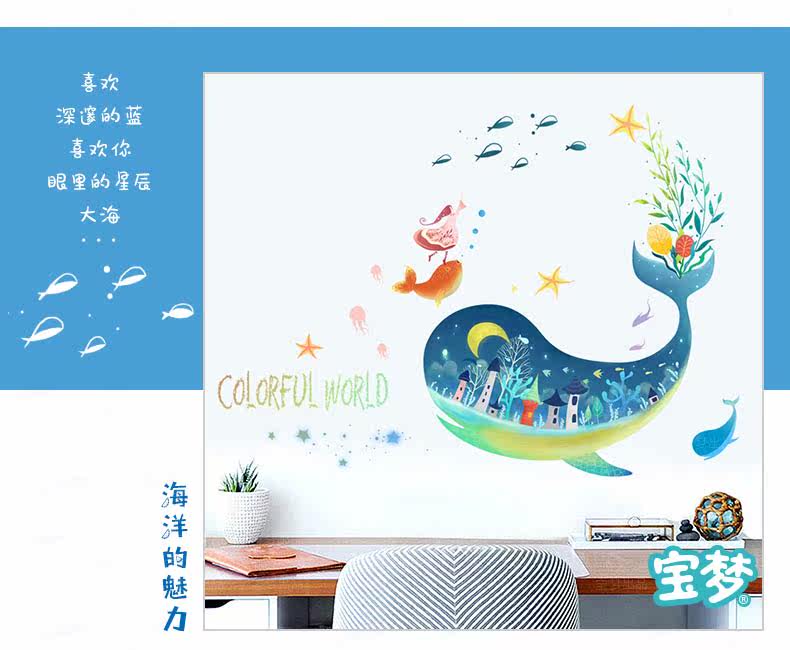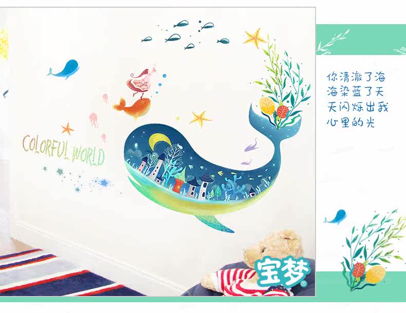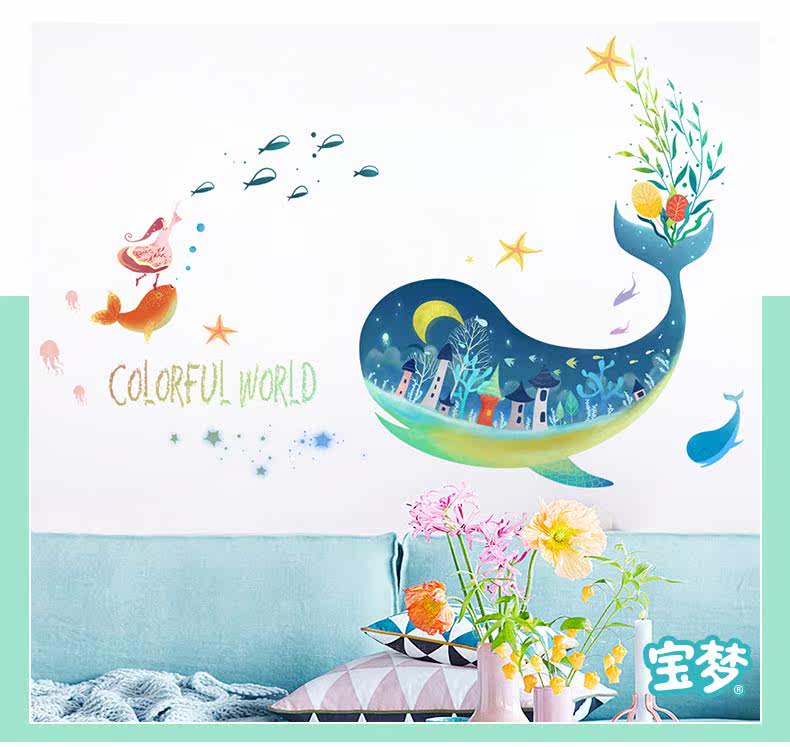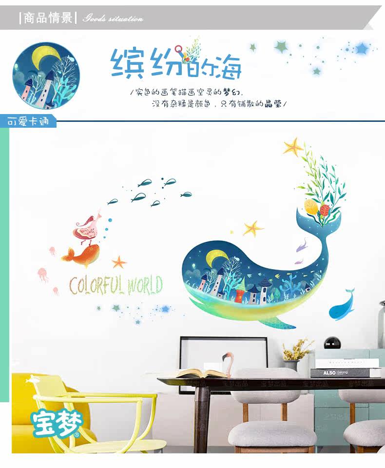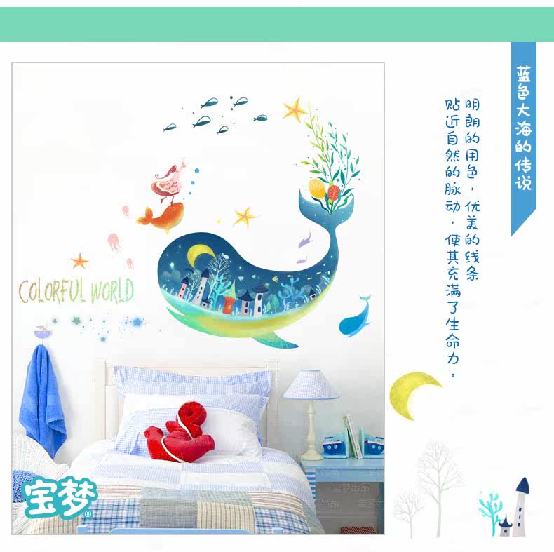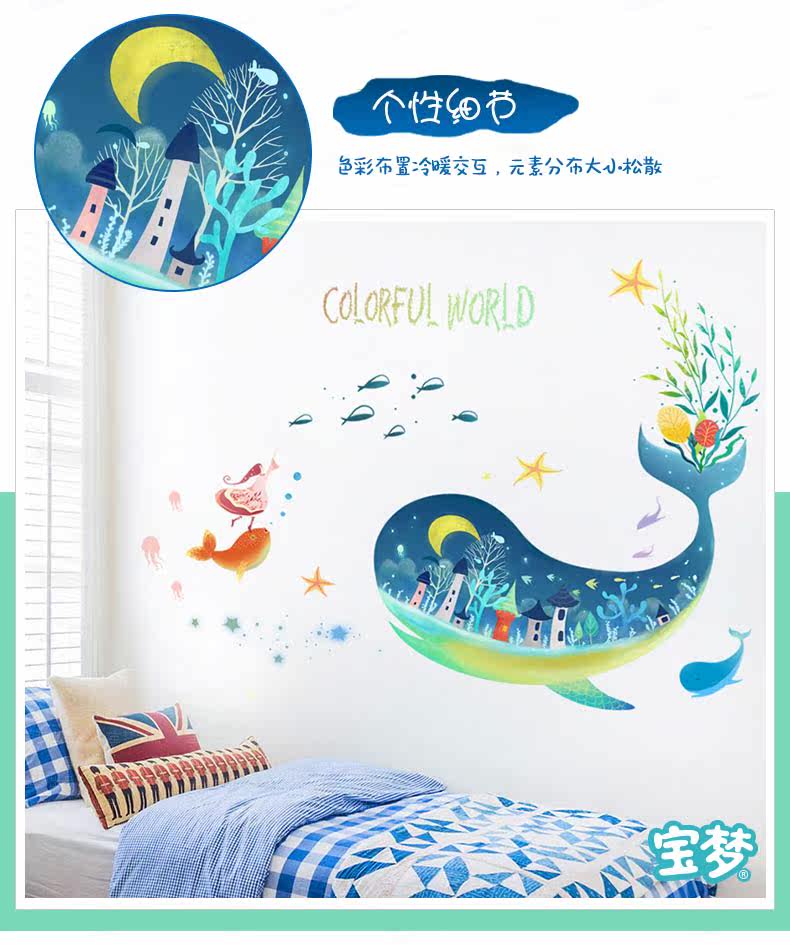 卡通儿童房卧室梦幻装饰品墙贴纸创意卫生间浴室可爱海底鲸鱼贴画