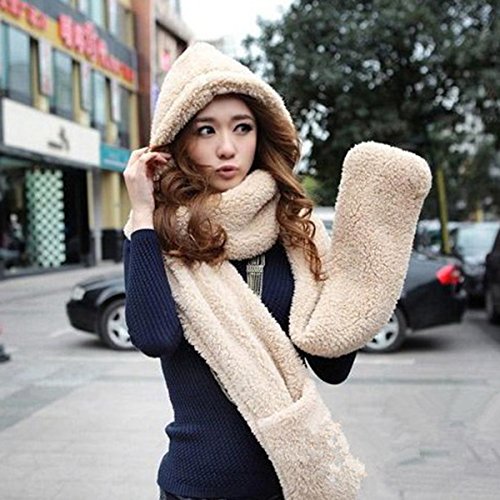 Studio : OLSUS Publisher : OLSUS Binding : Apparel Product Description Multifunction Soft Berber Fleece Warm Scarf w/ Gloves/ Hat for Women - Khaki Scarf with Glovesand hat for women, keep warm. General Quantity: 1 set Form Color: Others Material: Berber Fleece Gender: Women Suitable for: Adults Pattern: No Size Scarf Length: 158cm Scarf Width: 18cm Dimensions: 62.2 in x 7.09 in x 1.77 ; Weight: 10.62 oz Packing List 1 x Scarf