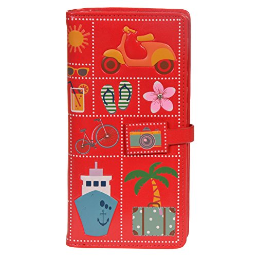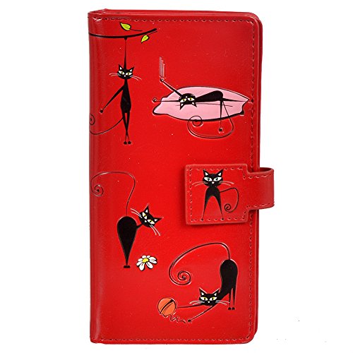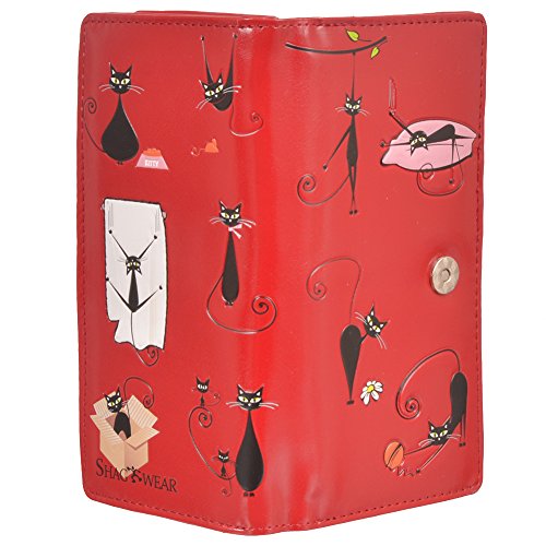 Shagwear Women's Large Zipper Wallet Crazy Cats Red