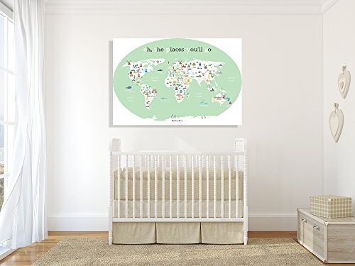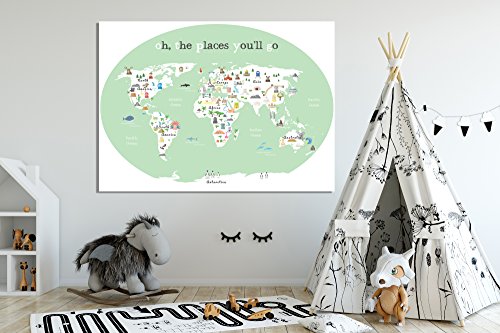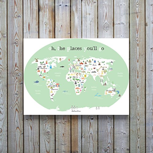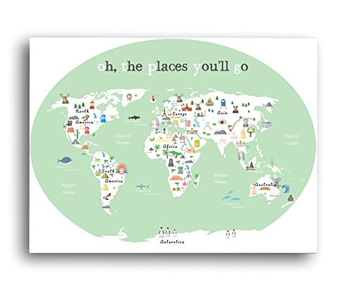 World Map Wall Art, Oh the Place You'll Go, Travel Map, World Map Print, Wall Art for Kids, Nursery Wall Art, Travel Decor, Kid's World Map, Childrens...