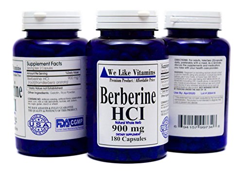 -. Binding : Health and Beauty -. Brand : We Like Vitamins -. EAN : 0694157997346 -. Feature : BEST VALUE Berberine on Amazon -180 Capsules- 3 MONTH SUPPLY - Each bottle contains 180 Capsules of Max Strength Berberine HCI for a full 3 Month Supply. Most others offer 120 pills or less at a higher price point. With We Like Vitamins Berberine you buy fewer bottles and save money. / MAXIMUM STRENGTH 900MG DAILY DOSE - Every serving of 2 capsules delivers 900mg of Berberine. / 100% Satisfaction Guarantee - If within 30 days your unhappy with your product in any way just send it back to us and we will fully refund your purchase price. No questions asked. ORDER RISK FREE / Guaranteed to contain no: artificial coloring, artificial flavors, preservatives, yeast, corn, milk or milk derivatives, lactose, salt, sodium, sugar, gluten starch or wheat. / MADE IN THE USA - All bottles are fresh from the manufacturer in the United States who runs a GMP facility, and have expiration dates up to 4 years from now. -. IsAdultProduct : 0 -. Label : Vitamins Because -. LegalDisclaimer : *The results described are not typical and will vary based on a variety of factors. Results may vary. *These statements have not been evaluated by the Food and Drug Administration. Always consult your doctor before starting to take a new supplement, not to be used by persons under the age of 18. -. Manufacturer : Vitamins Because -. MPN : Berberine -. PackageQuantity : 1 -. PartNumber : Berberine -. ProductGroup : Health and Beauty -. ProductTypeName : HEALTH_PERSONAL_CARE -. Publisher : Vitamins Because -. Studio : Vitamins Because -. Title : Pure Berberine 900mg 180 Capsules Best Value -. UPC : 694157997346