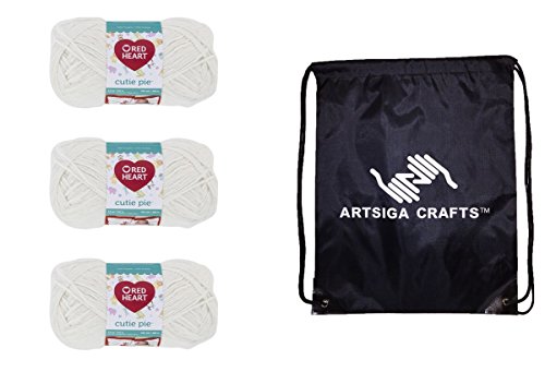 Bundle Includes 3-Pack of Red Heart Cutie Pie Yarn Cotton E834-0010 with 1 Artsiga Crafts Project Bag