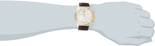 -. Feature : Two-tone watch in stainless steel with silver sunray dial and croco-embossed brown leather band / Swiss quartz movement with analog display / Protective Sapphitek crystal dial window / Features buckle closure, tachymeter on inner bezel, date window, and chronograph functions with 60-second, 30-minute, and day-of-the-week subdials / Water resistant to 165 feet (50 M): suitable for swimming and showering