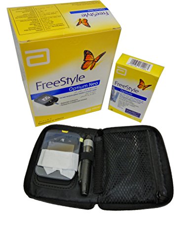 -. Feature : Package content: FreeStyle Optium Neo meter, setup guide, insulin dose guide, carry case, micro USB cable, lancing device, 10 lancers, and 10 blood glucose strips. / Shows blood glucose results in 5 seconds, and tests blood ketone as well. / Records glucose results and insulin - 1000 events. / A great product for diabetic patients. / Made in UK; CE approved.