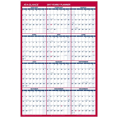 -. Title : AT-A-GLANCE Paper Wall Calendar 2017, Yearly, 36 x 24", NON-Erasable, Vertical/Horizontal (PM212-28)