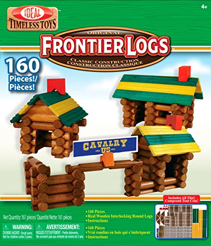 -. Title : Ideal 160 Piece Frontier Logs Classic Wood Building Set