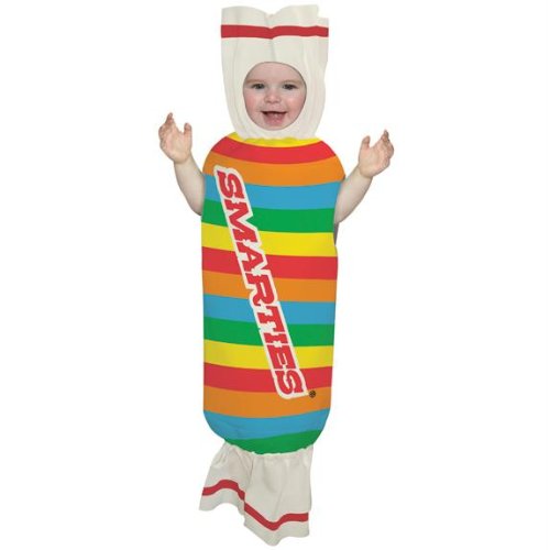 -. Binding : Toy -. Brand : Rasta Imposta -. ClothingSize : 6-12 Months -. Color : Red -. Department : baby-girls -. EAN : 0791249415501 -. Feature : One polyester bunting outfit with a candy roll design and Smarties logo. / The baby candy costume comes in size Newborn. / Please note: This item's color may vary due to inherent manufacturing variations or your computer monitor's color settings. The item you receive will be identical or substantially similar to the item pictured in this listing. -. IsAdultProduct : 0 -. Label : Rasta Imposta -. Manufacturer : Rasta Imposta -. PackageQuantity : 1 -. ProductGroup : Apparel -. ProductTypeName : TOYS_AND_GAMES -. Publisher : Rasta Imposta -. Size : Newborn -. Studio : Rasta Imposta -. Title : Smarties Bunting Costume - Infant -. UPC : 799491320086