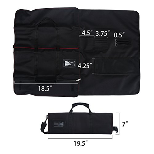 Tosnail Chef Knife Case Roll Bag with 21 Slots & 1 Large Zipper Pocket - Easily Carried by Handle or Shoulder Strap