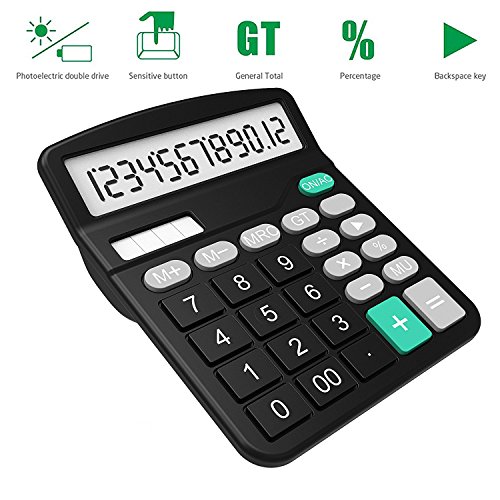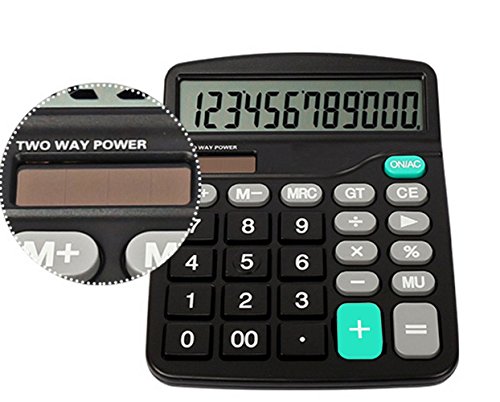 -. Feature : Large 12-digit display / Desktop calculator,not contain the battery / Dual power: solar and battery, solar function works even in the dim light / On and Off buttons, Profit margin %, +/-, Key Rollover / Extra-large LCD display