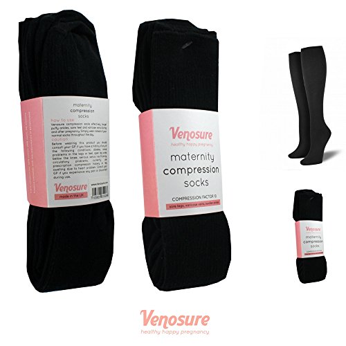 2-PACK Venosure® EASY-ON Compression Socks BEST for Women Maternity Pregnancy Nursing Exercise and Fatigue (US 8-11 (UK 6-9), Black)