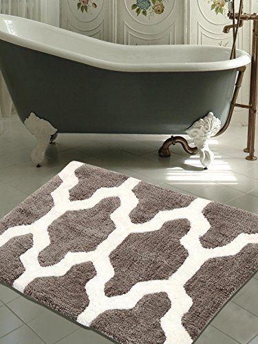 WARISI Roman Quatrefoil Pattern Area, Bedroom Bathroom Rug, Grey/White