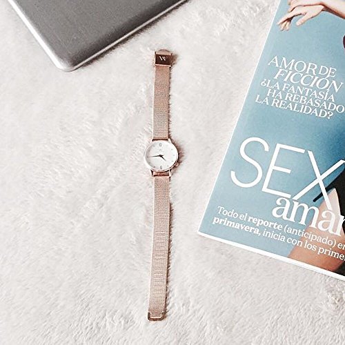 4 O'clock Crown Design ensure you feel comfortable to wear. Innovative clasp buckle design allows you to adjust the strap to fit your wrist size without any tools. IP Plating 12mm Mesh Strap. 5 ATM water resistant.